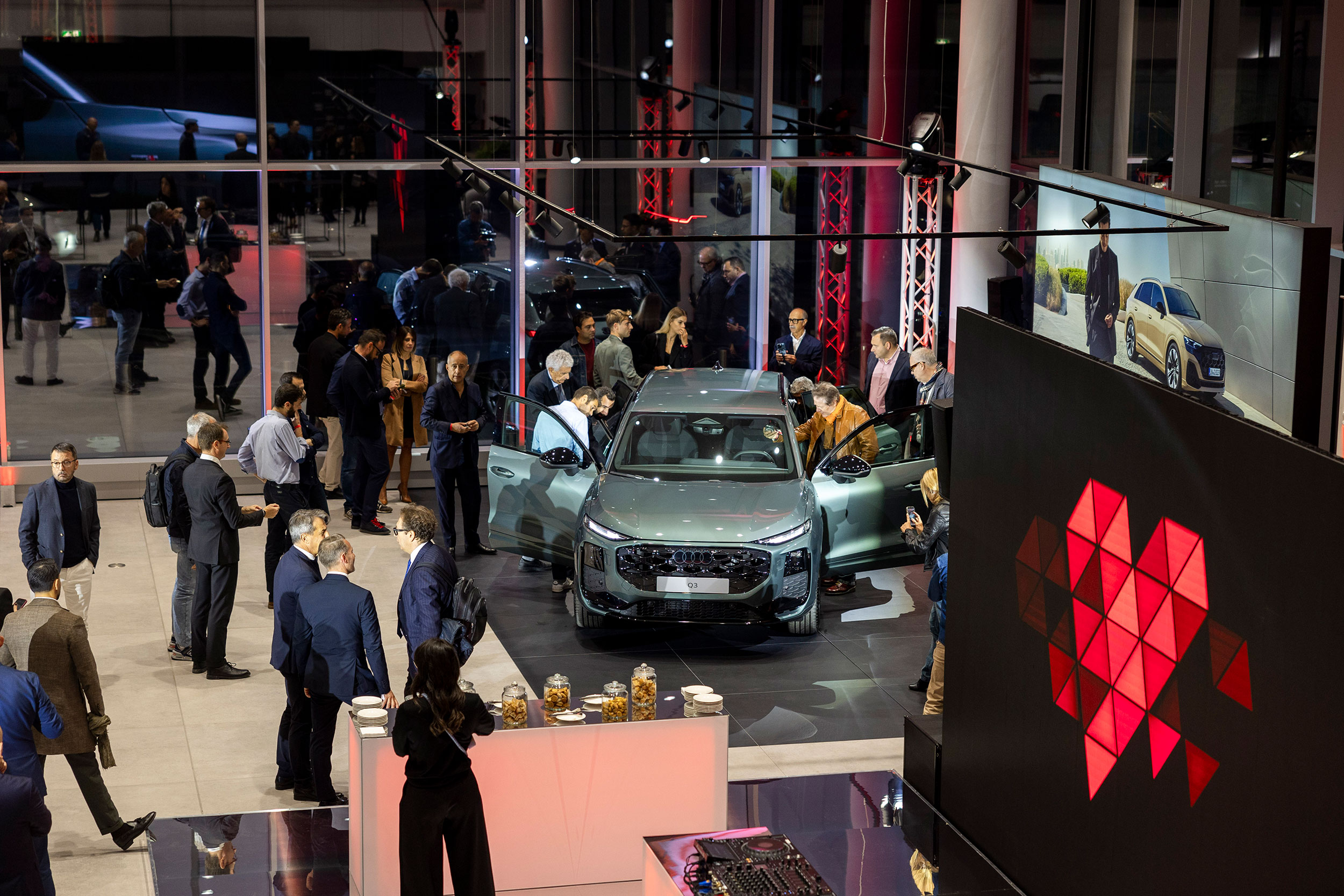 The inauguration project covered the entire communication ecosystem: concept, visual identity, graphic design, styling, stand design, organizational management, corporate content, catering and a dedicated show for the launch of the new Audi Q3, attended by institutional representatives and the President of Audi Italia. A concrete demonstration of how an integrated team can generate real, long-lasting value for the brand.