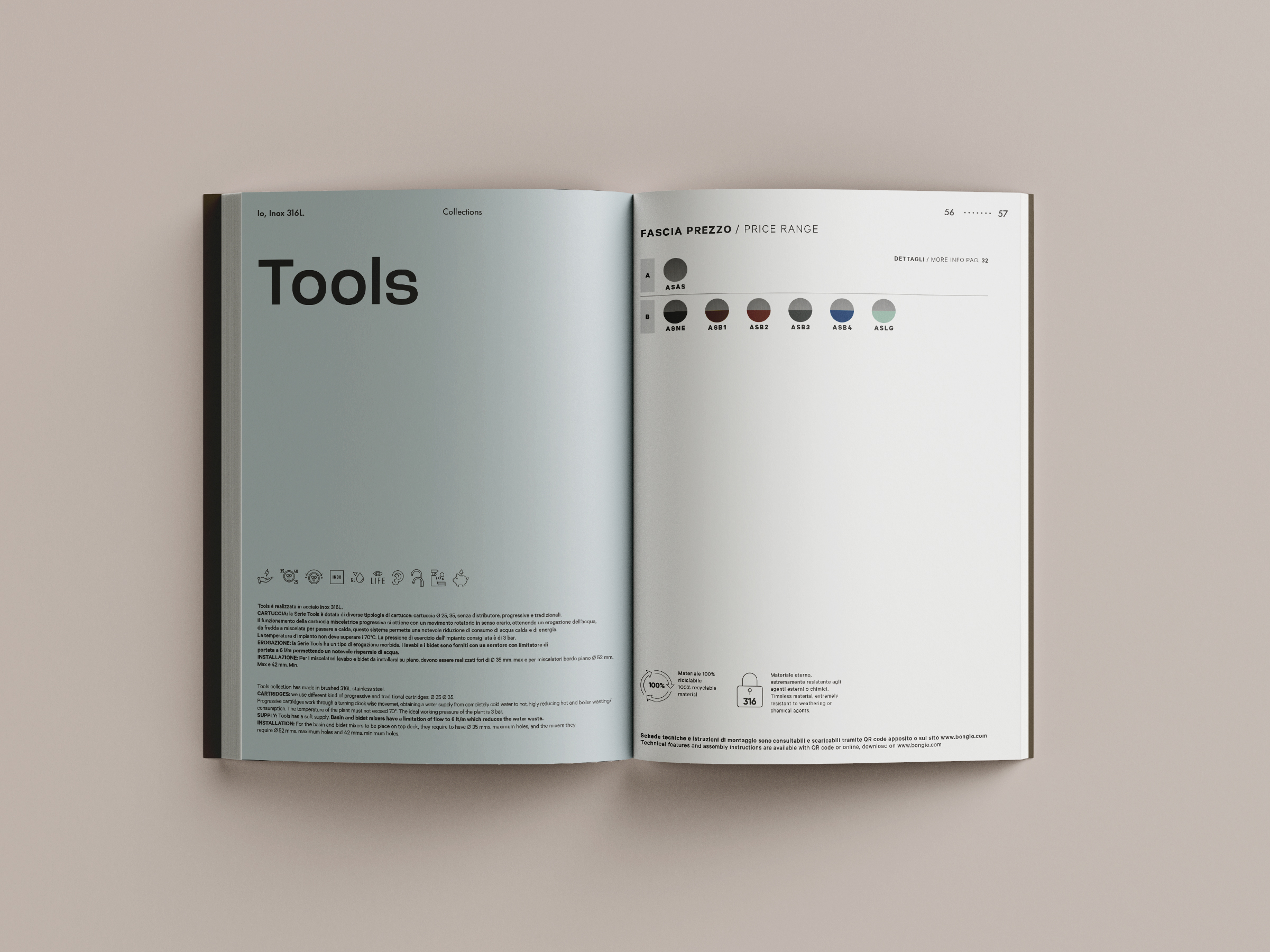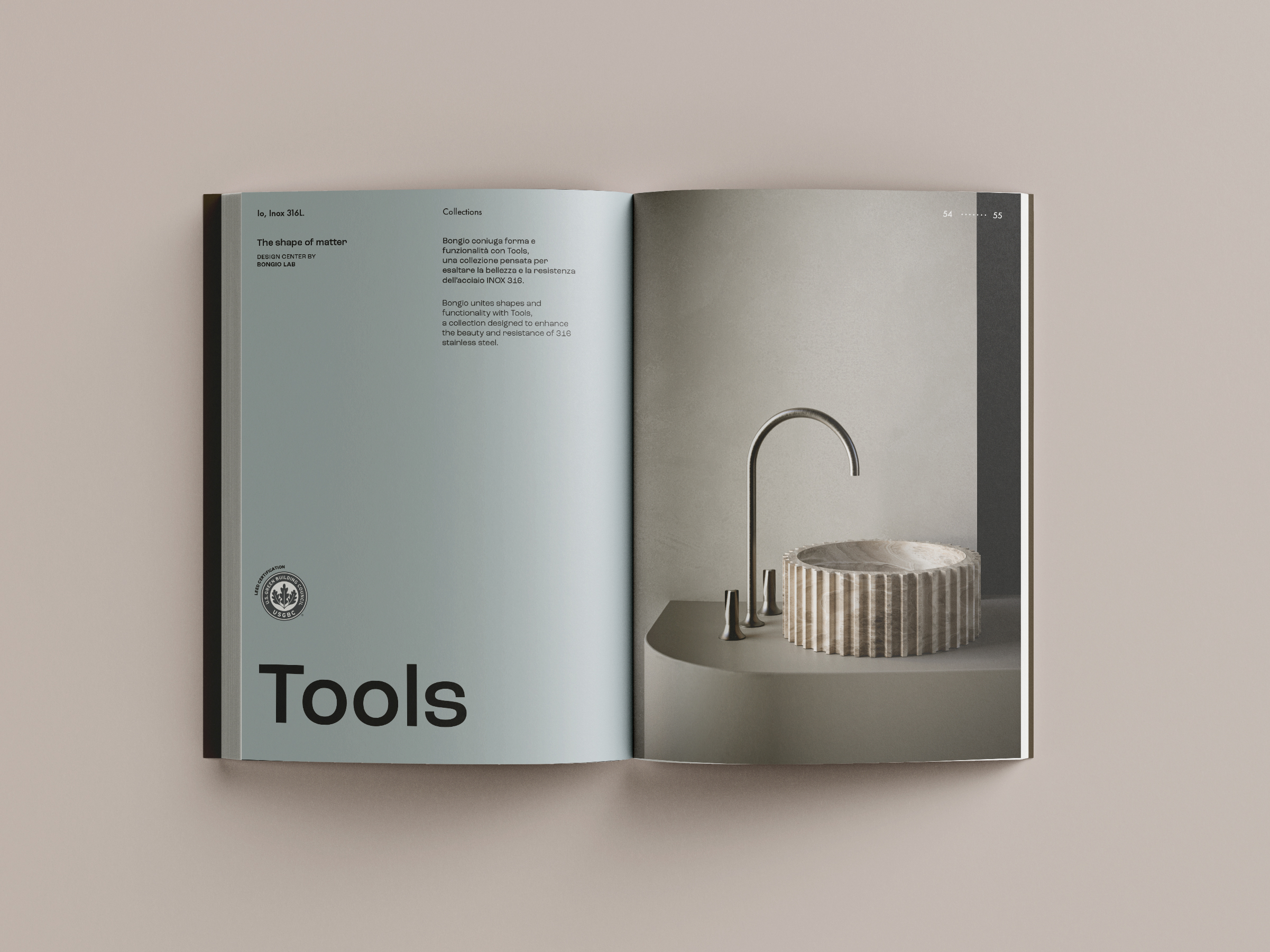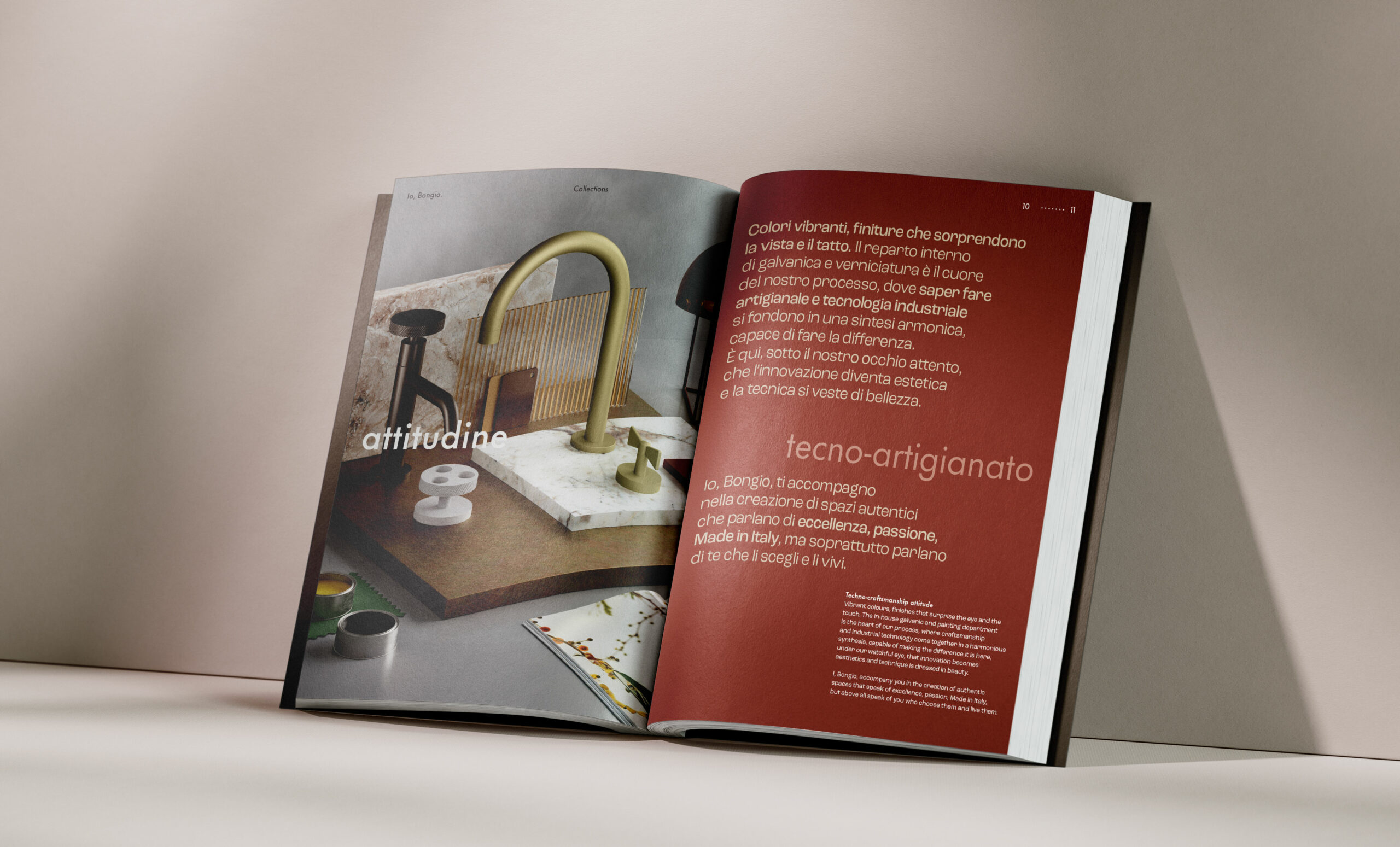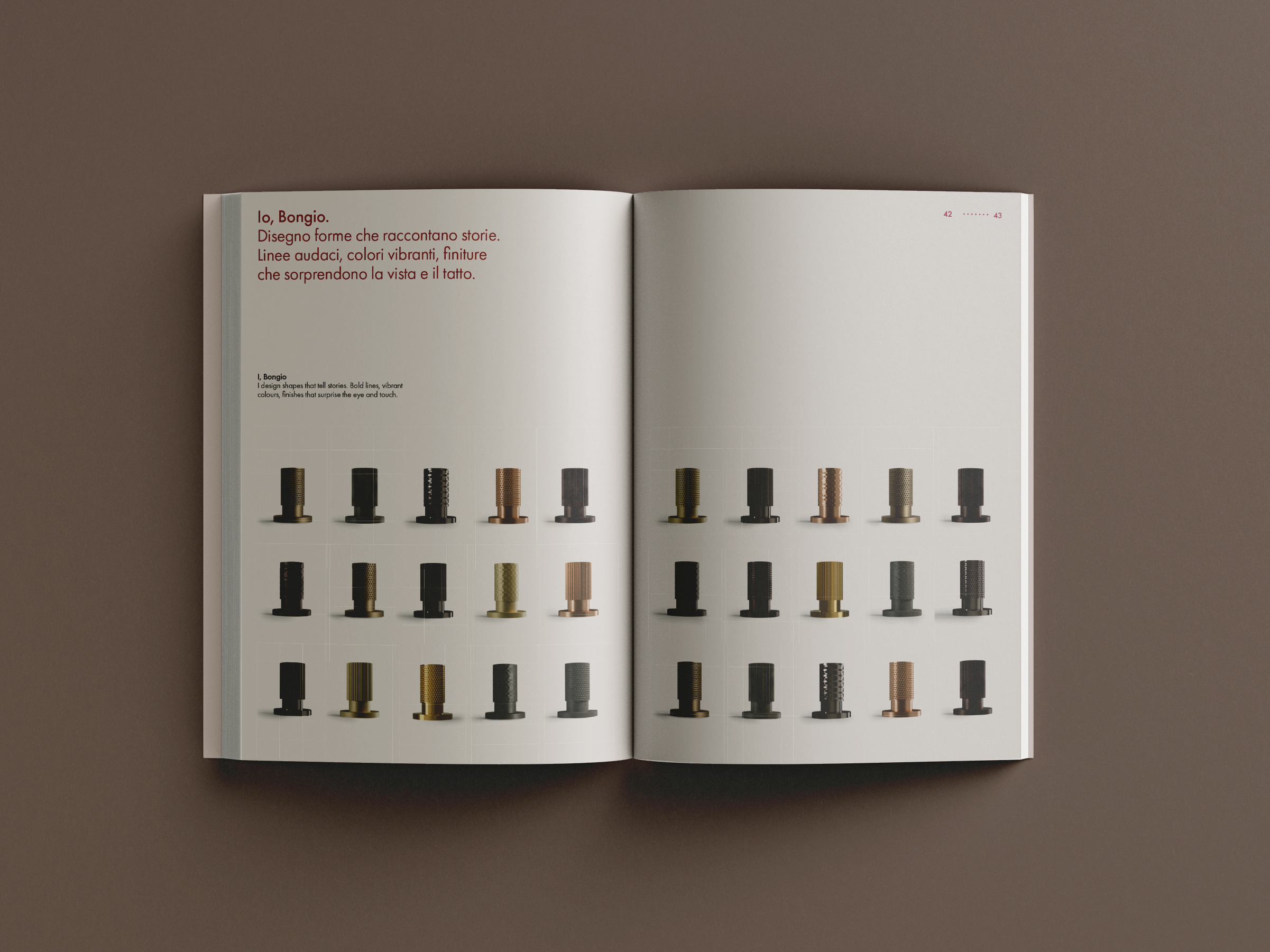 For Bongio, Exprimo redefined the brand image through a new identity concept expressed across two complementary editorial tools: a revamped technical price list and a visually compelling emotional catalog. The IoBongio concept emphasizes the brand’s strong values: the interaction between tradition and innovation, Italian craftsmanship combined with cutting-edge technology, extensive product customization, and a meticulously refined aesthetic.